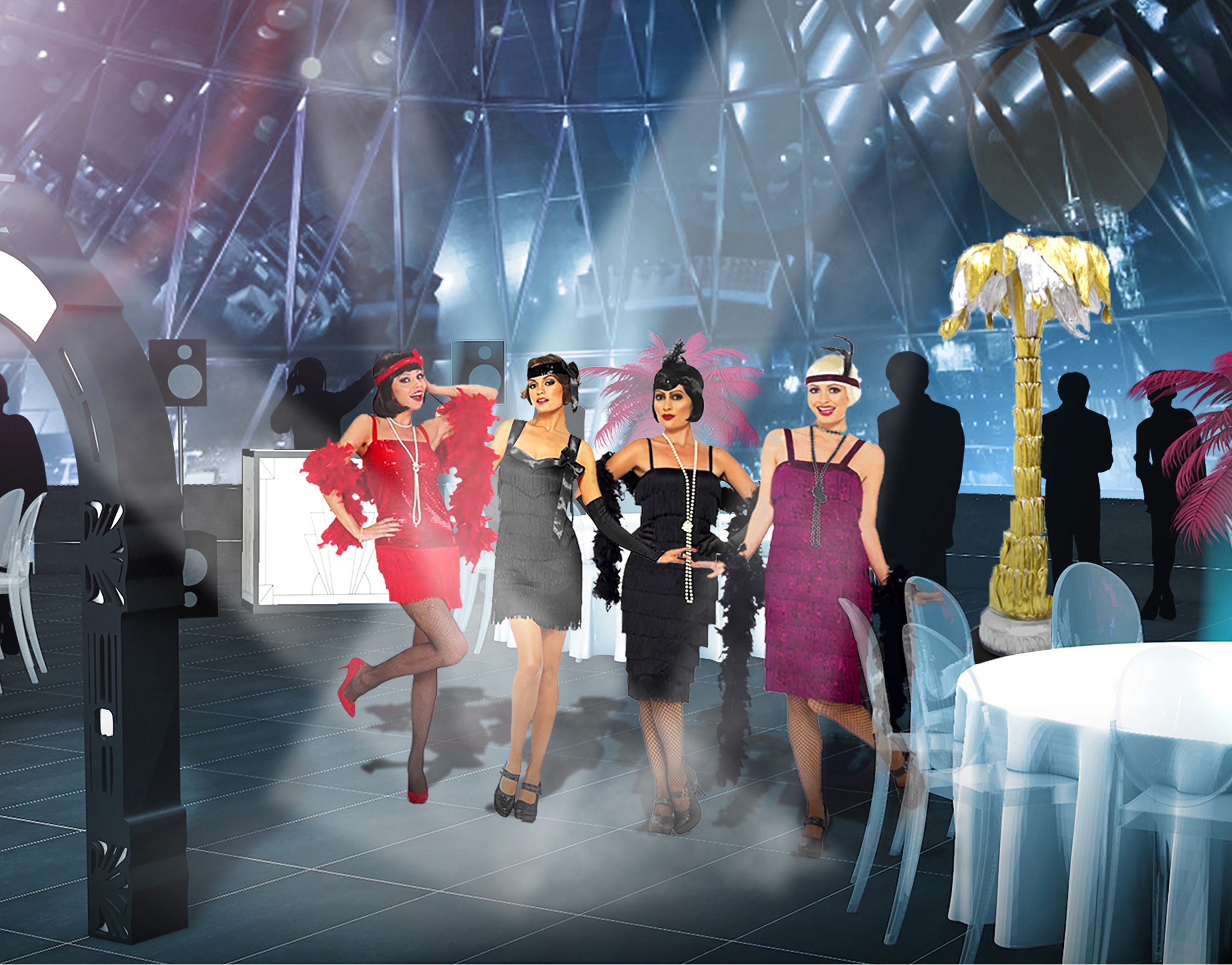 Uptown Events approached me to produce some visuals for a range of Christmas party themes they offer, on the top floor of 30 St Mary Axe - otherwise known as the Gherkin. We tried some different styles but settled on 3D models which gave the most realistic idea of the layout.