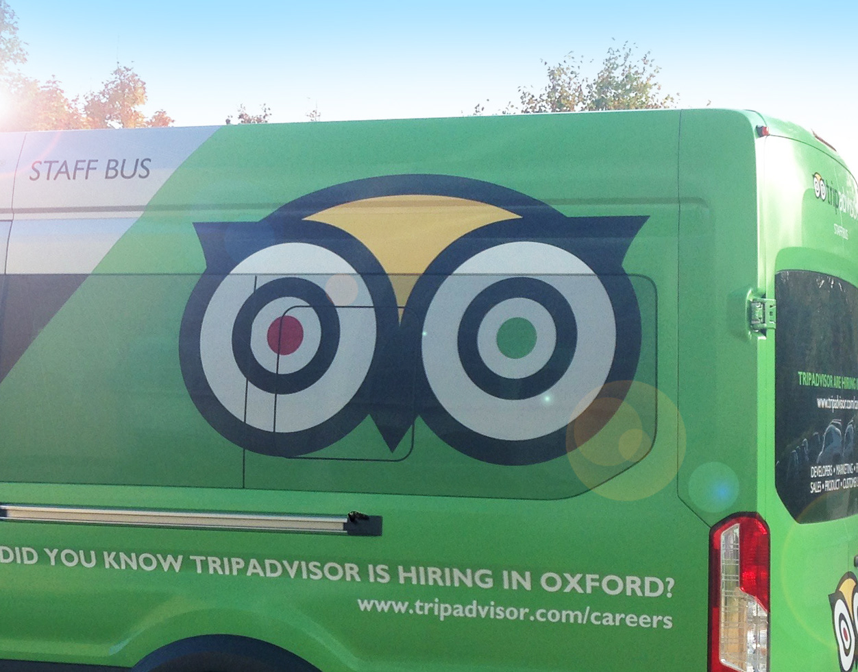 A large scale wall covering for the foyer of the Holiday Lettings / TripAdvisor building in Oxford. Also vinyl wrap for the staff busses.