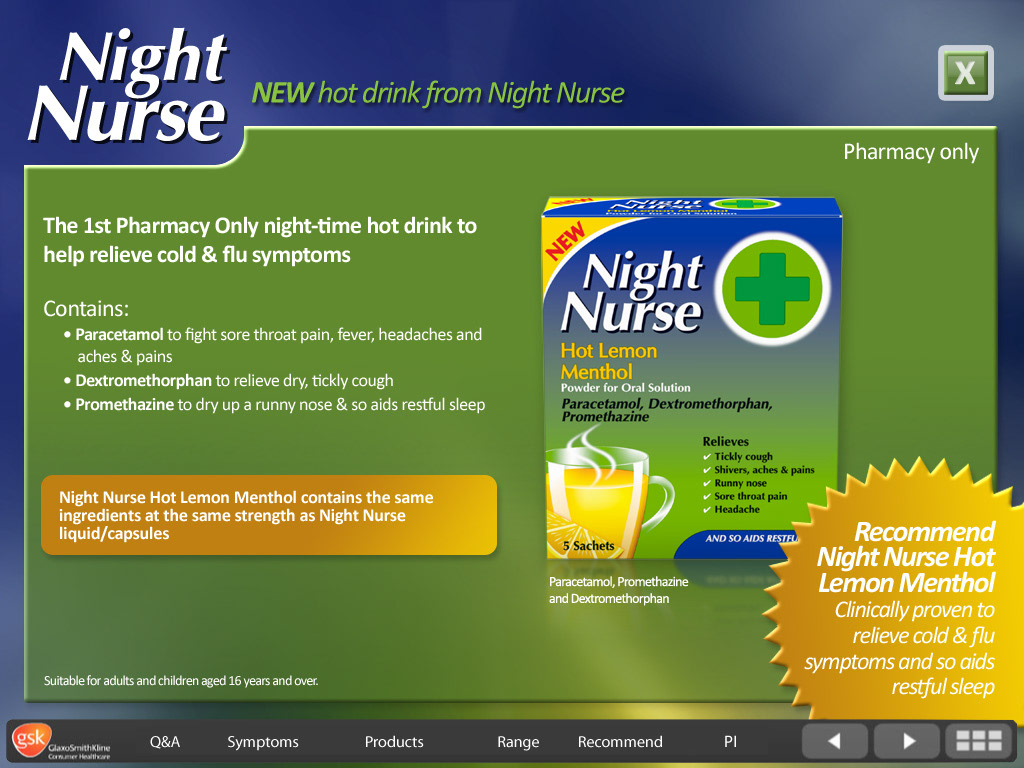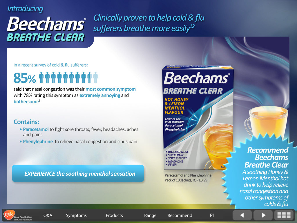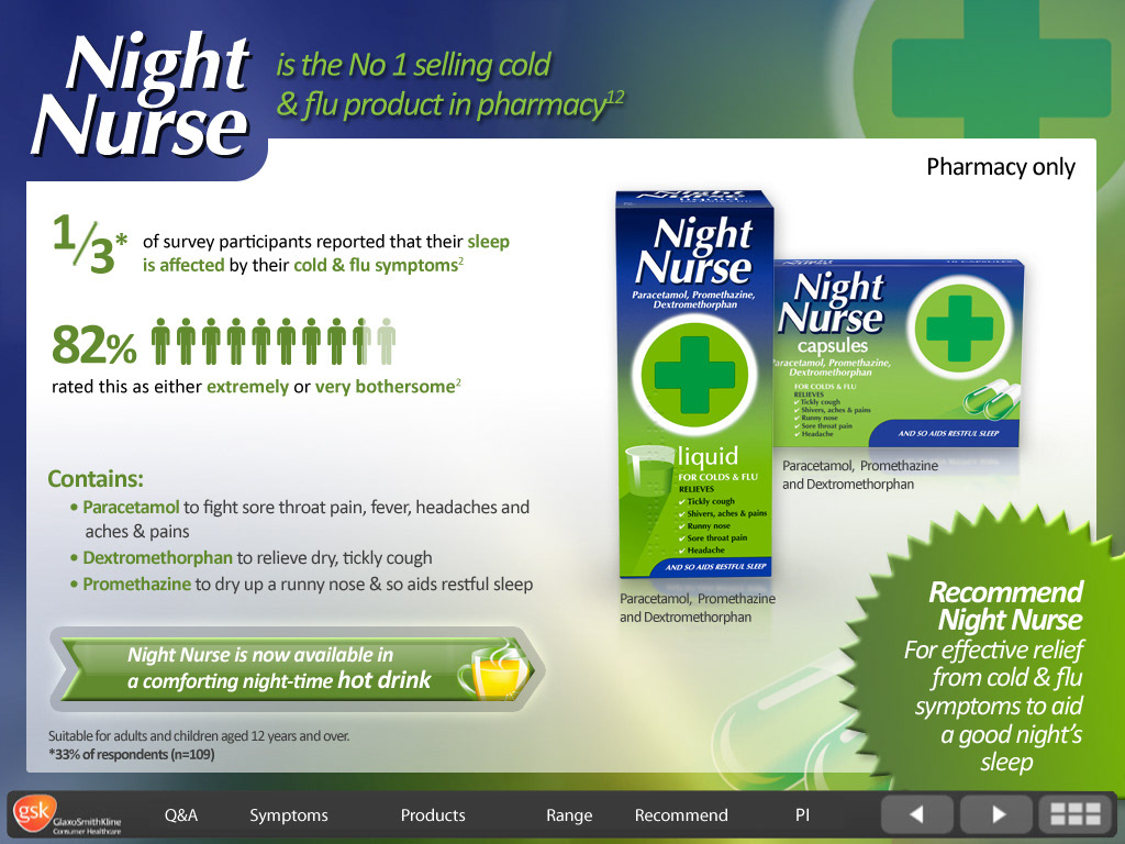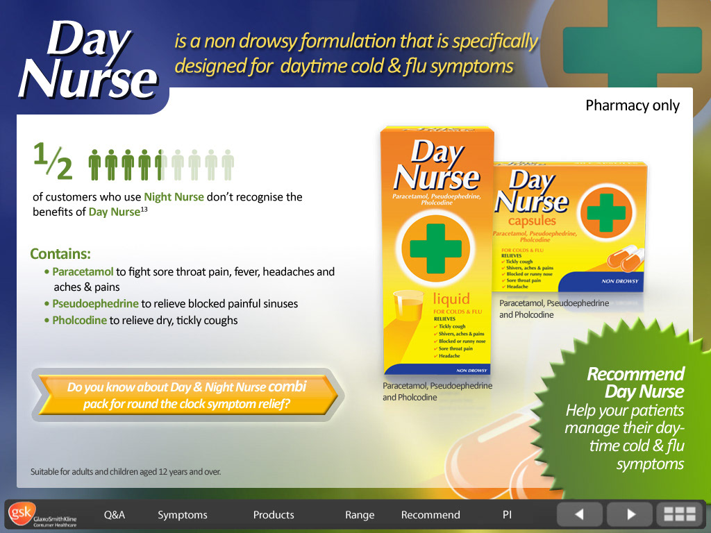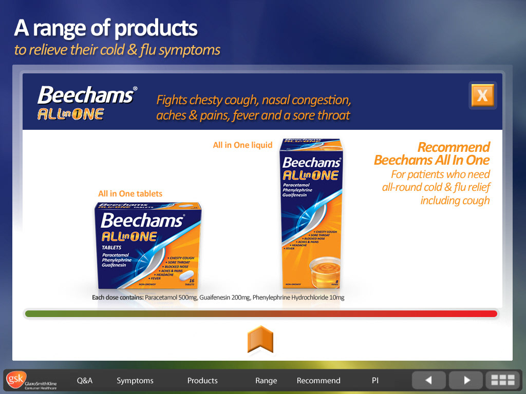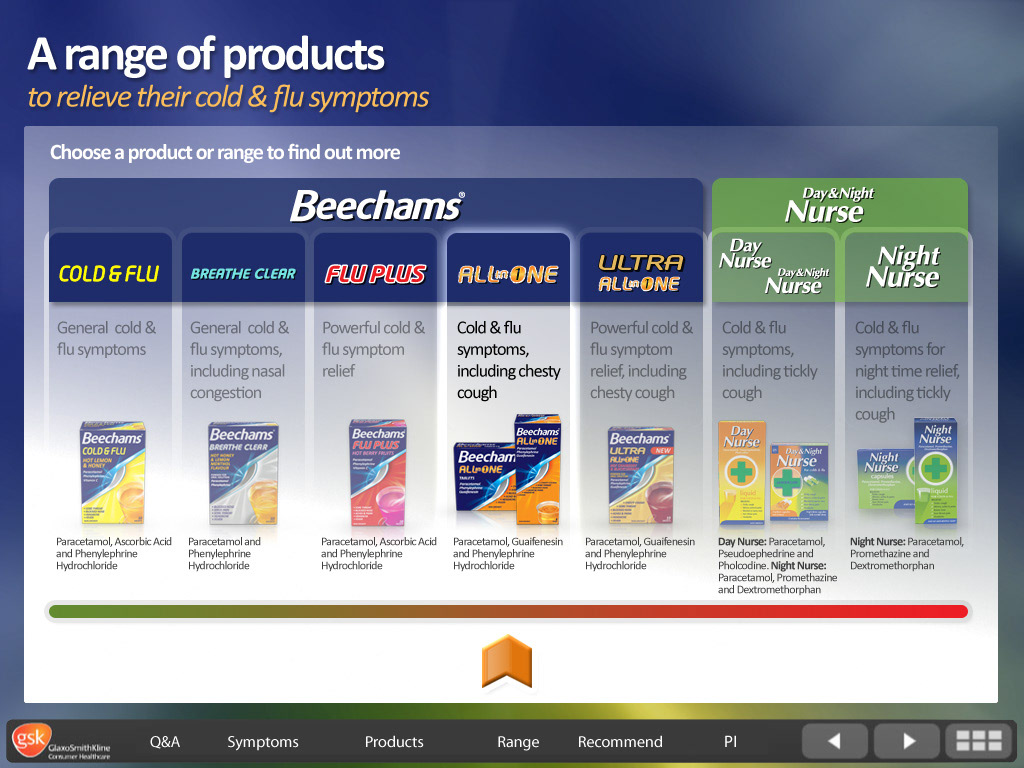 GSK Flue - screen design for interactive eLearning course.