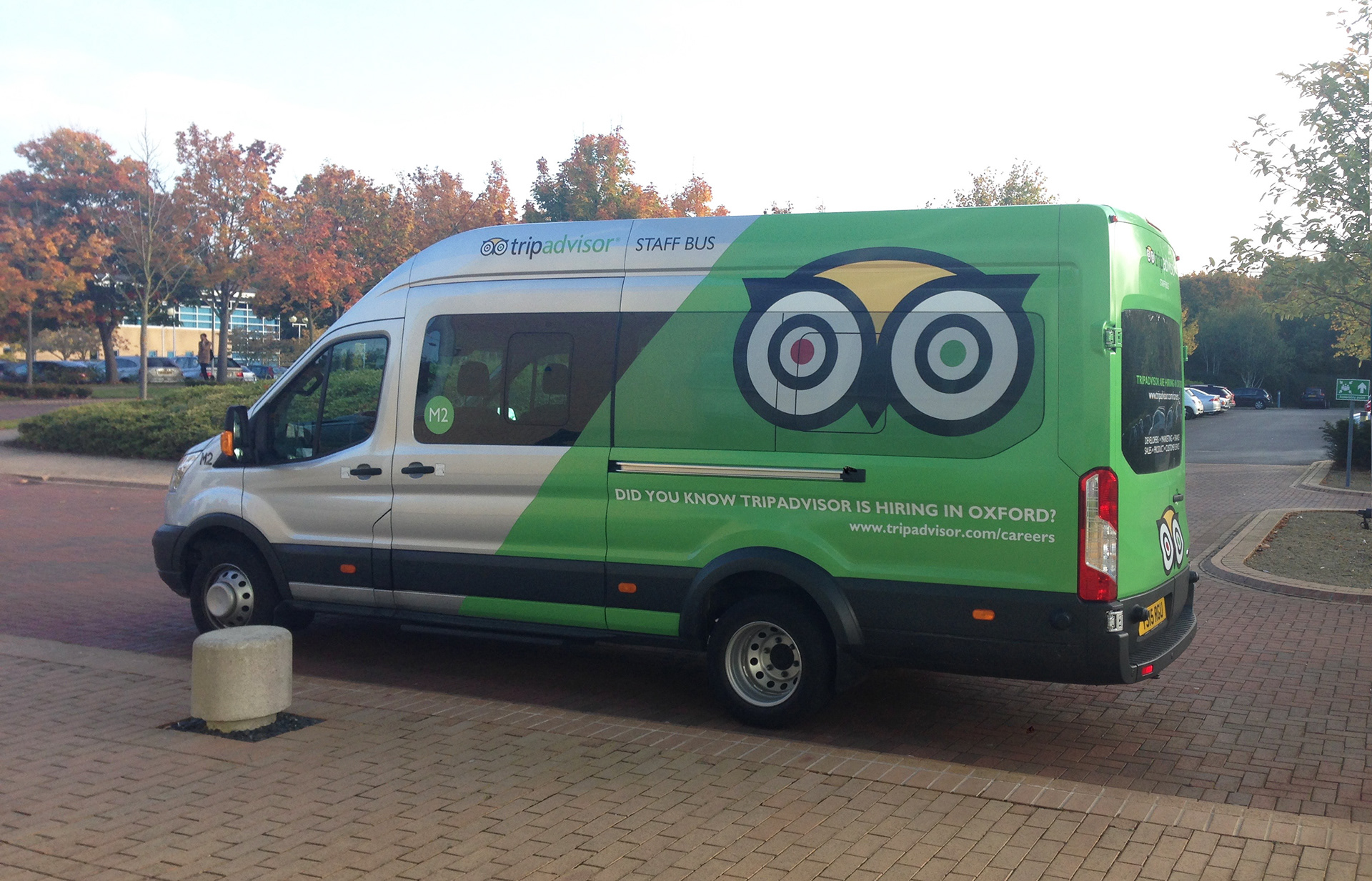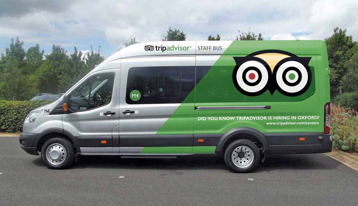 The new TripAdvisor staff bus complete with vinyl wrap.